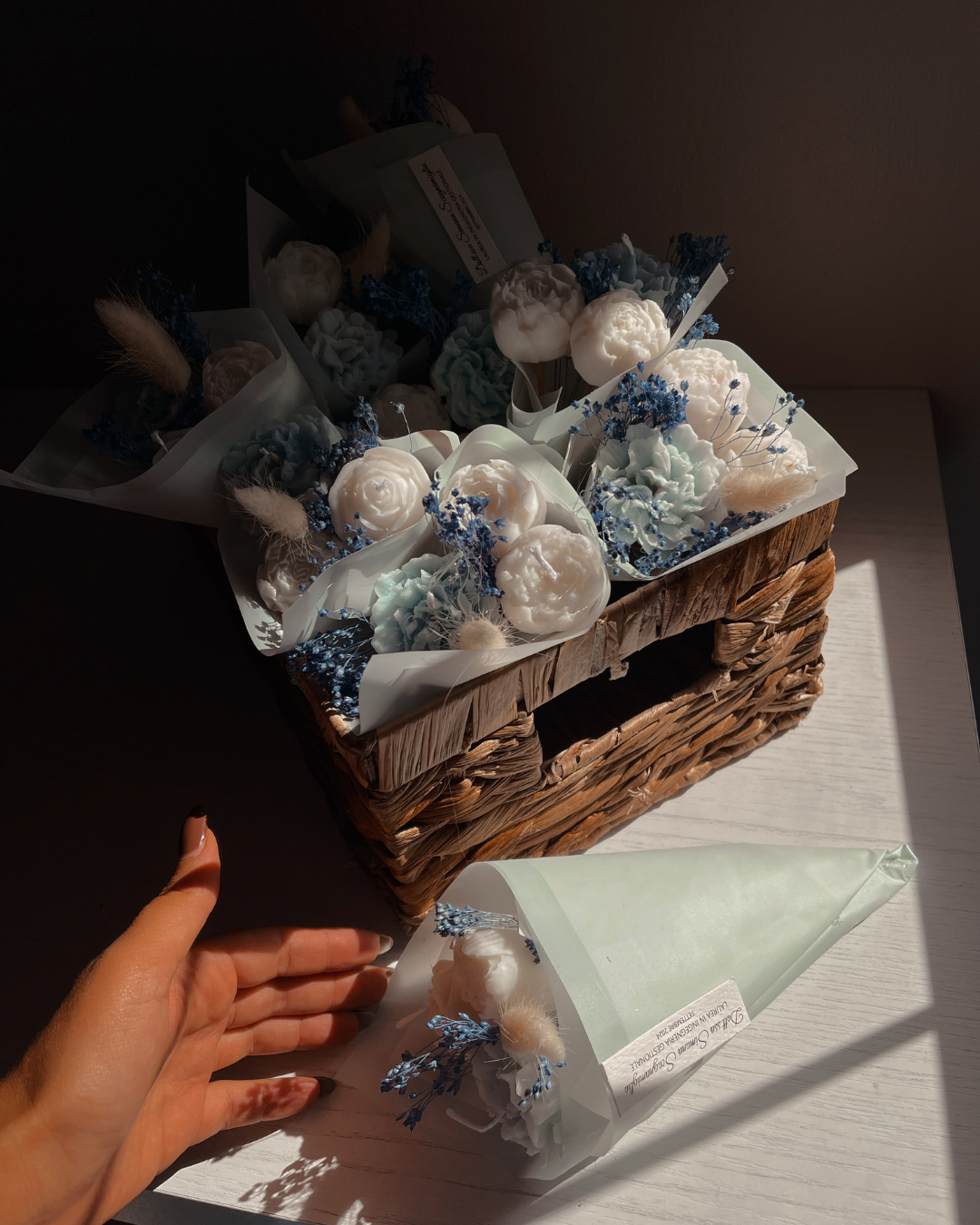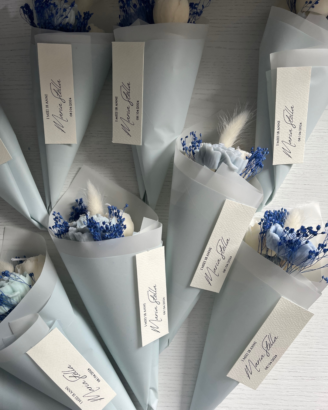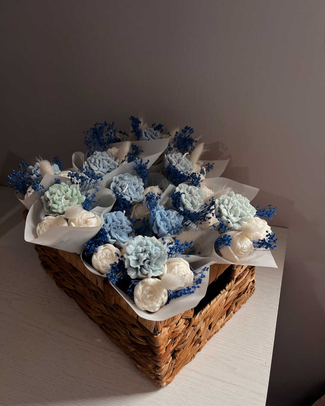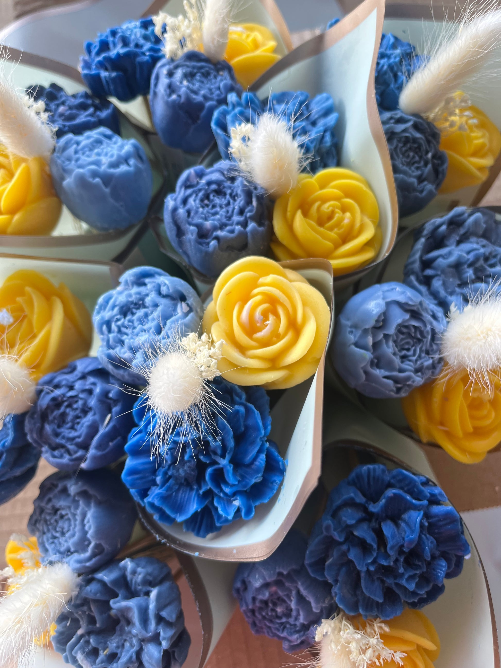 ATTENZIONE: LE CANDELE DEI BOUQUET POSSONO NON PRESENTARE STOPPINO IN QUANTO LA LORO FUNZIONE È SOLO DECORATIVA.
