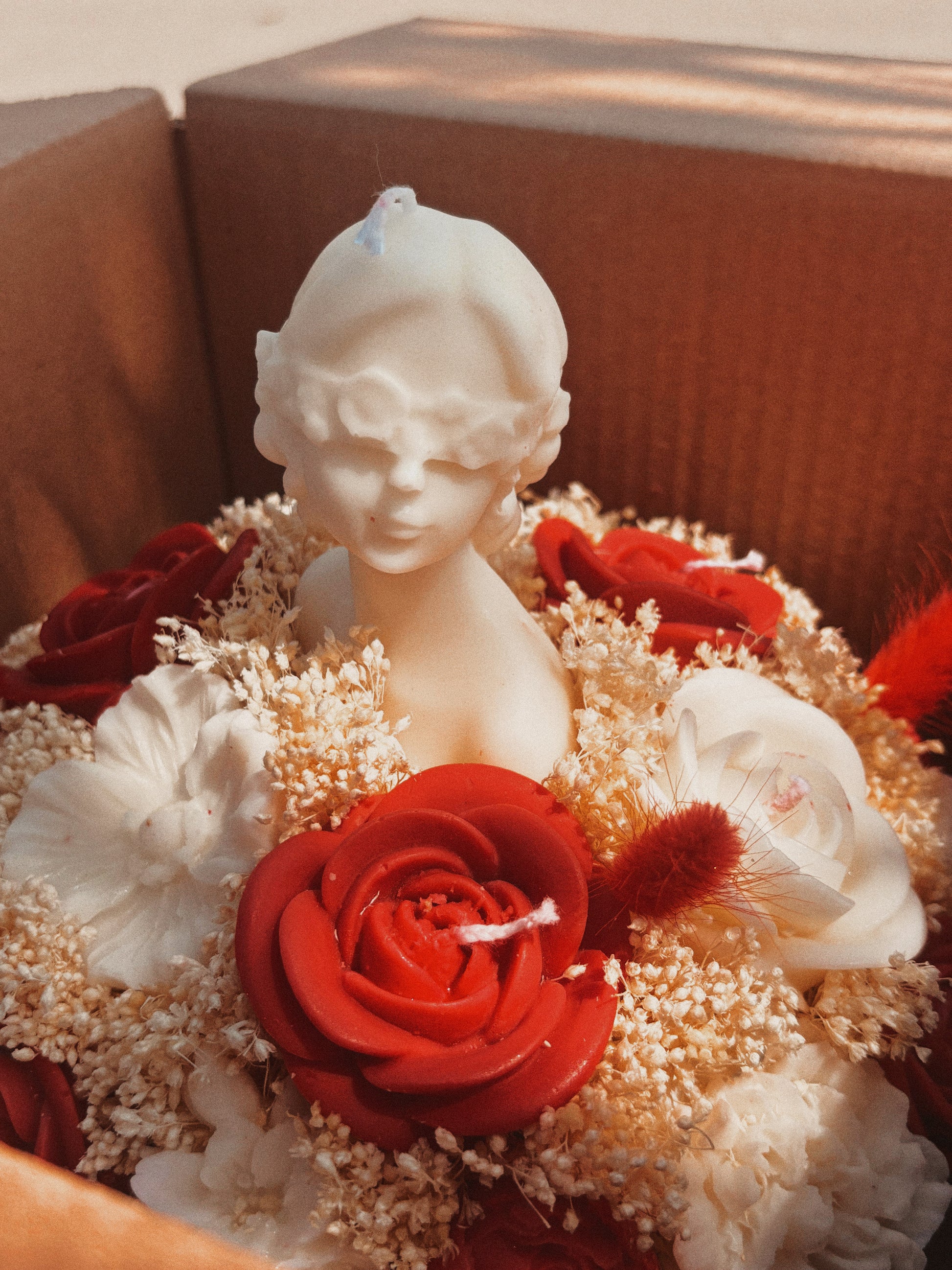 Un delicato bouquet in formato S che racchiude molto più di semplici fiori: al suo interno trova spazio la nostra esclusiva candela "Dea Bendata", simbolo della bellezza interiore e portafortuna per eccellenza. Un pensiero raffinato e significativo, perfetto per augurare buon auspicio o celebrare l’autenticità di chi lo riceve.