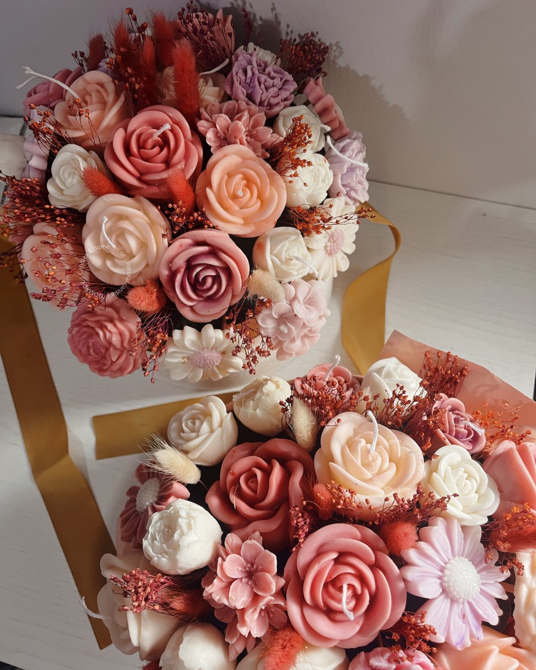 ATTENZIONE: LE CANDELE DEI BOUQUET POSSONO NON PRESENTARE STOPPINO IN QUANTO LA LORO FUNZIONE È SOLO DECORATIVA.