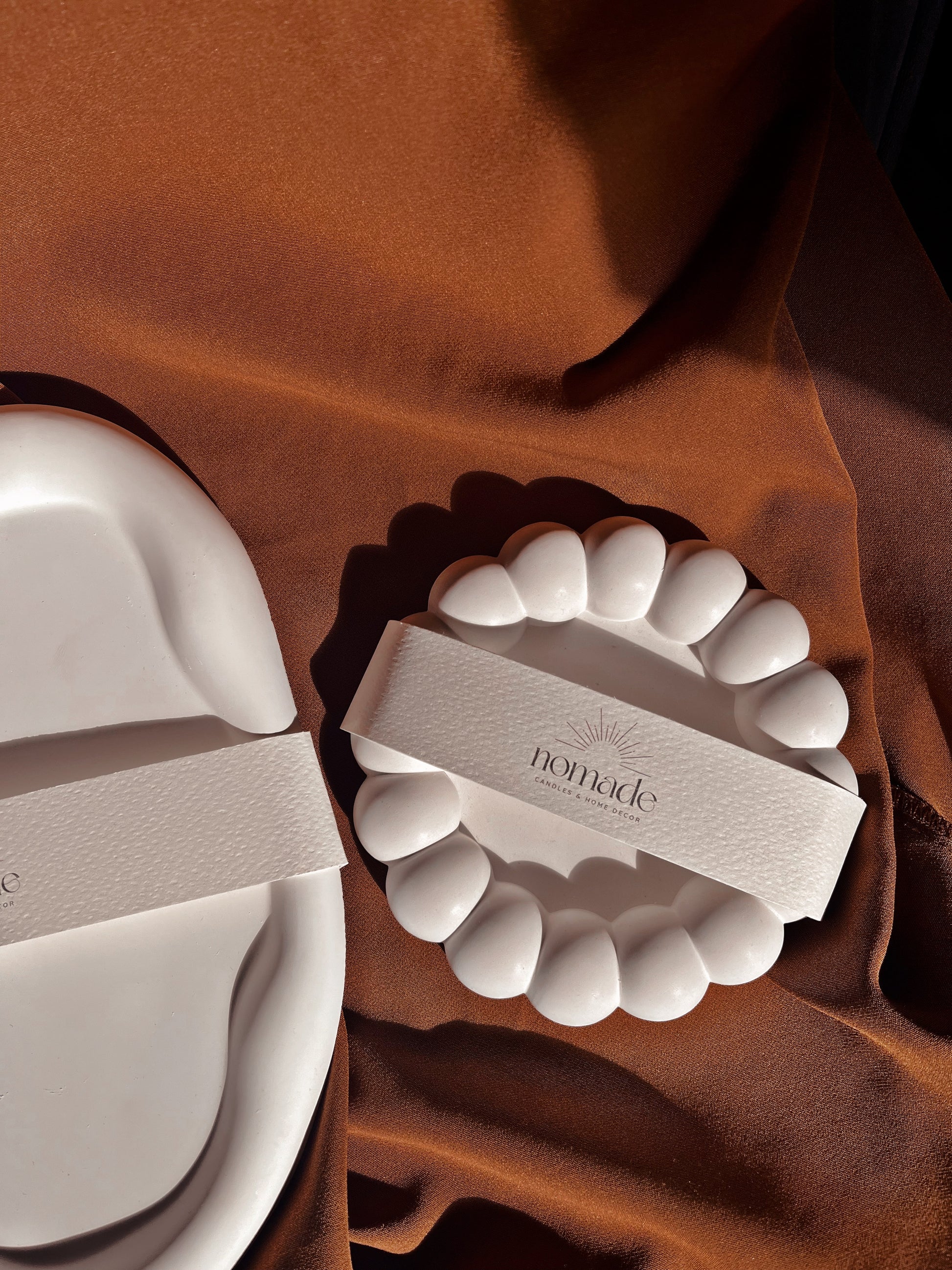 Il nostro vassoio Bubble è realizzato con 100% polvere di ceramica e colato a mano nel laboratorio di Nomade, in Italia.