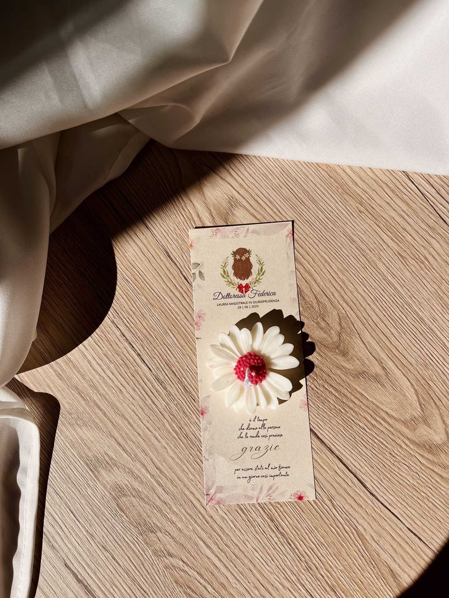 Semplice, raffinato e d’effetto: il nostro cartoncino lungo personalizzato con candela artigianale è un’idea perfetta per ogni tipo di cerimonia o ricorrenza.