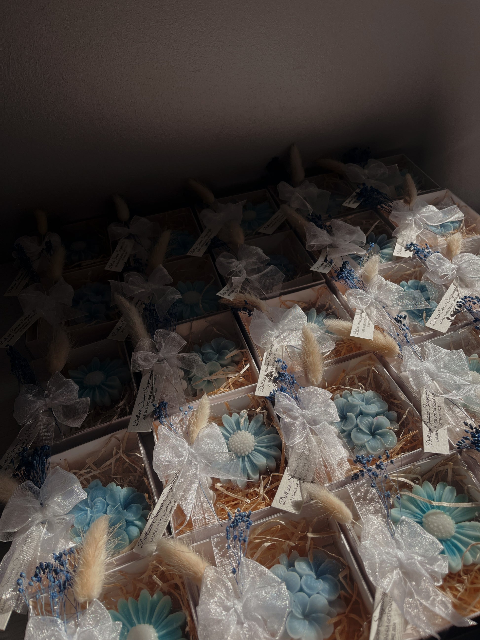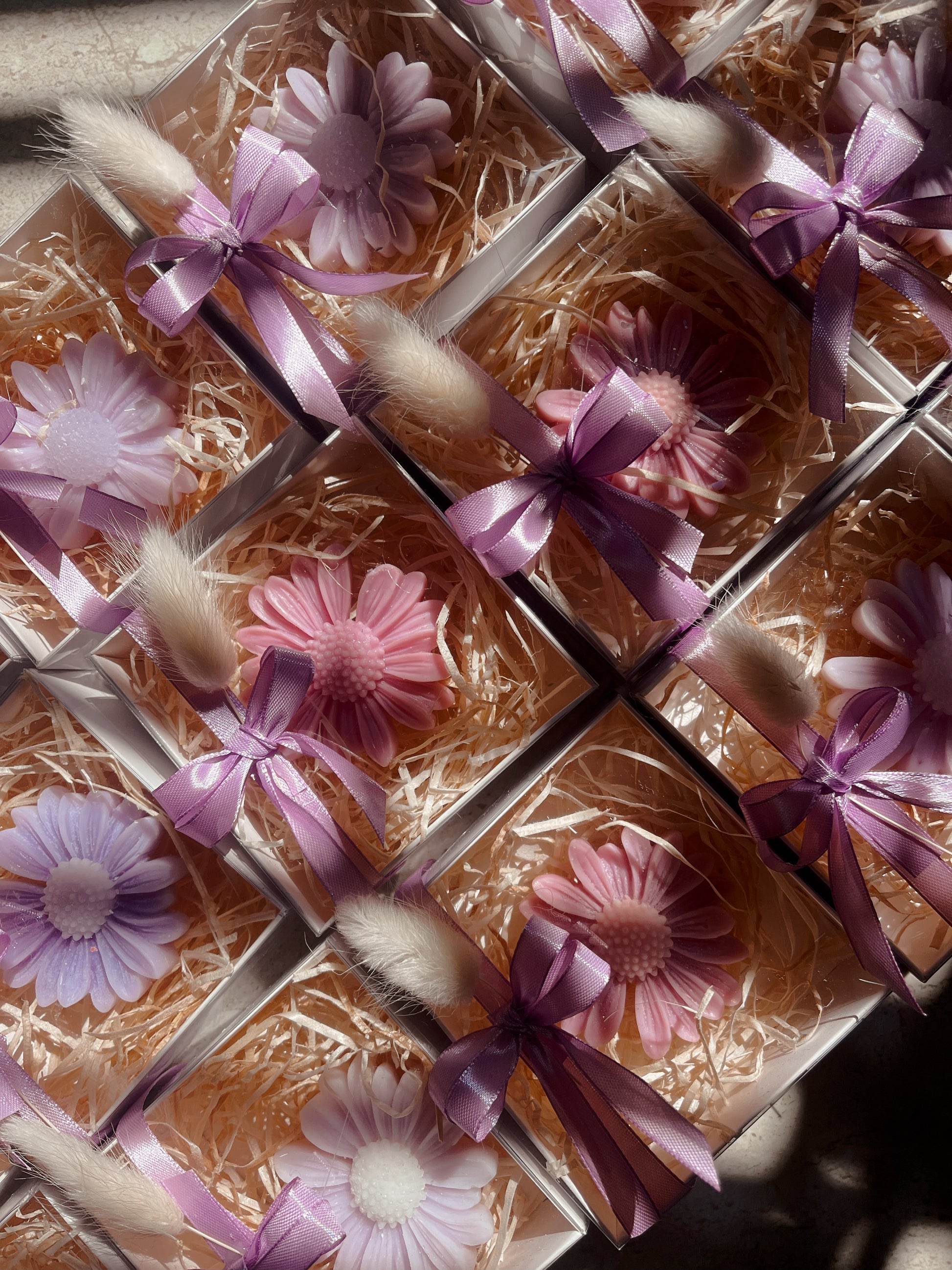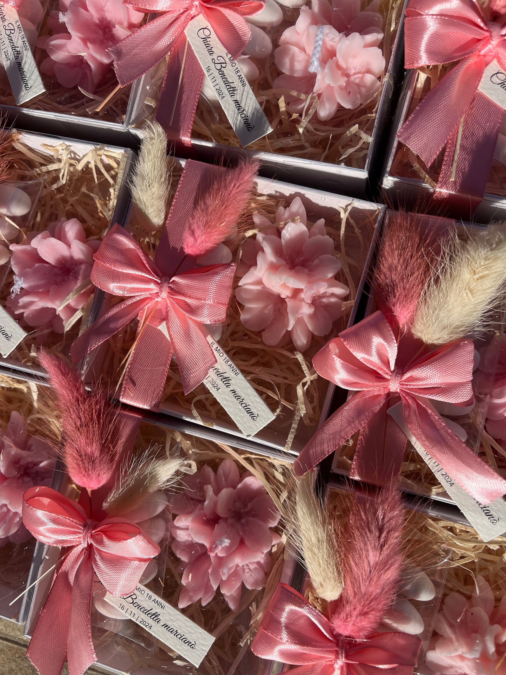 Candele artigianali a forma di fiori, racchiuse in eleganti scatoline, per donare calore e bellezza a chi amate. Un ricordo prezioso che illumina il cuore.