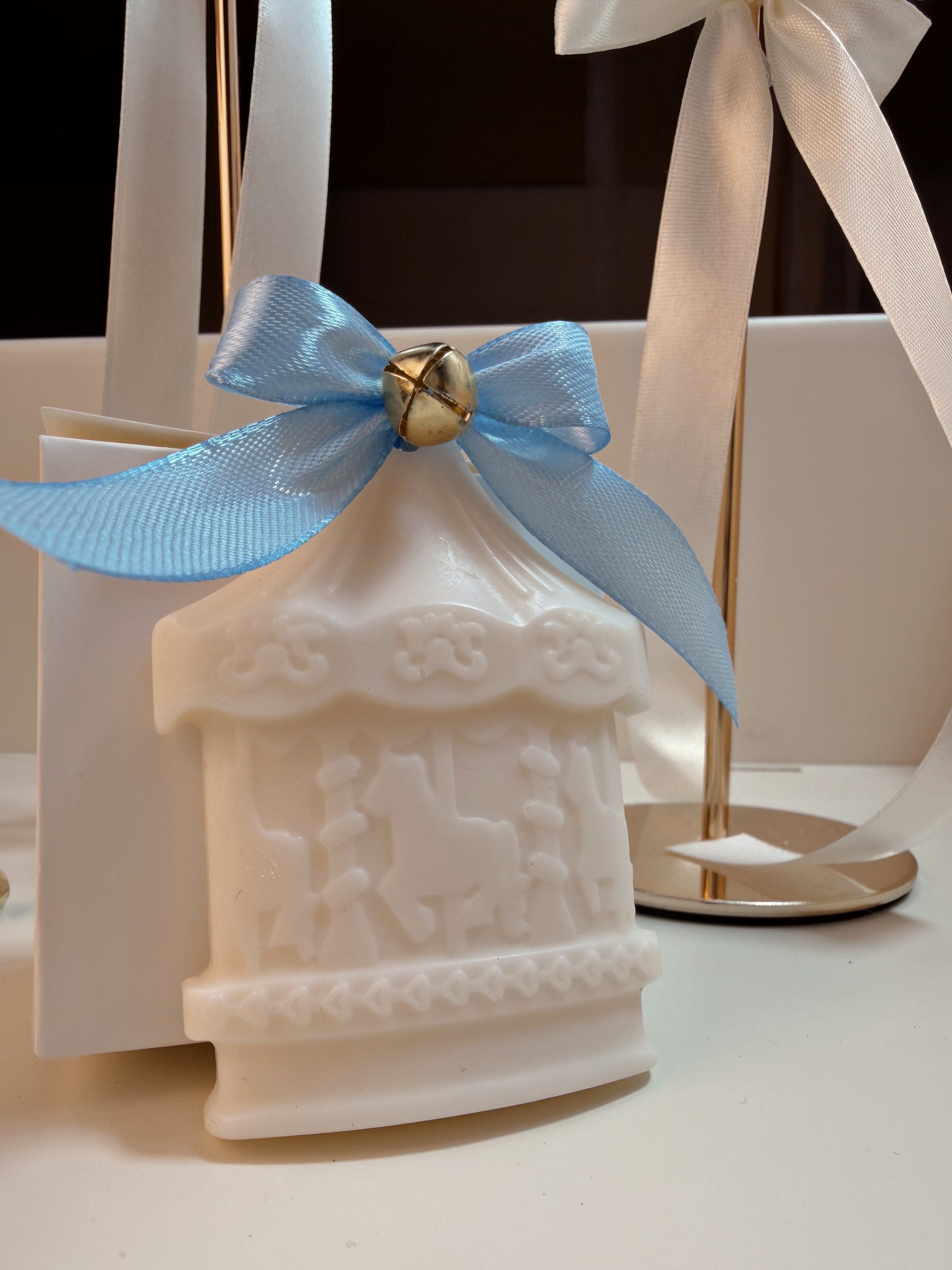 Romantica, delicata e piena di magia: la tart profumata a forma di carillon è un simbolo di dolcezza e tenerezza, perfetto per celebrare una nascita o un battesimo con eleganza.