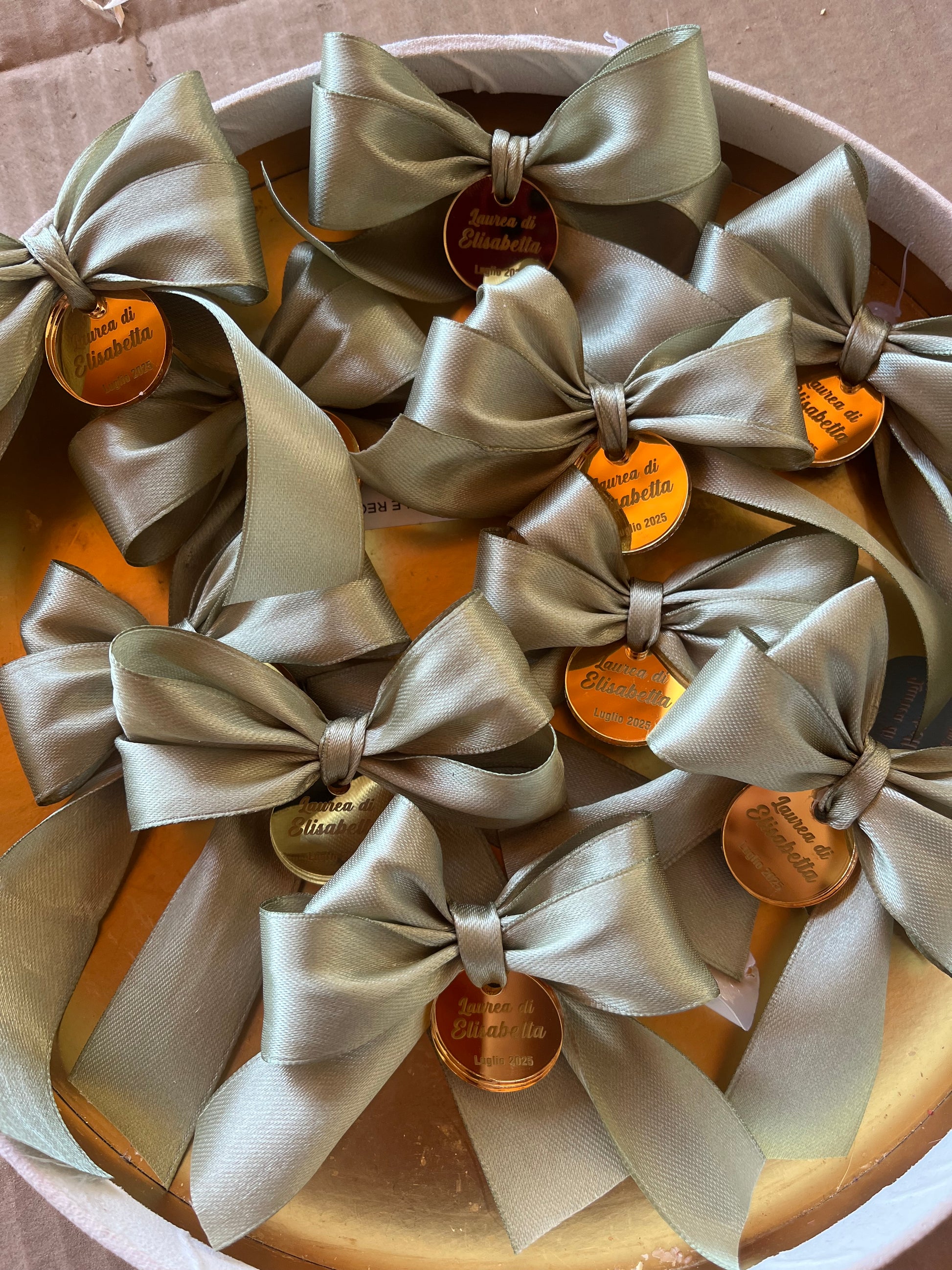 Inserisci nelle note dell’ordine: nome, data dell'evento, colore del fiocco, colore della candela e cosa incidere sull’etichetta.