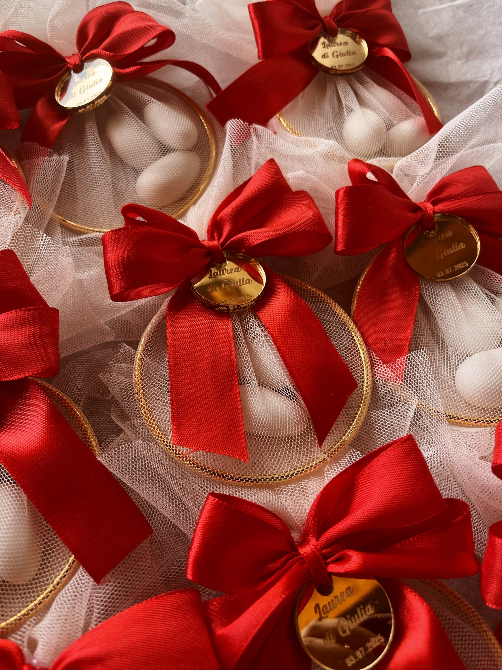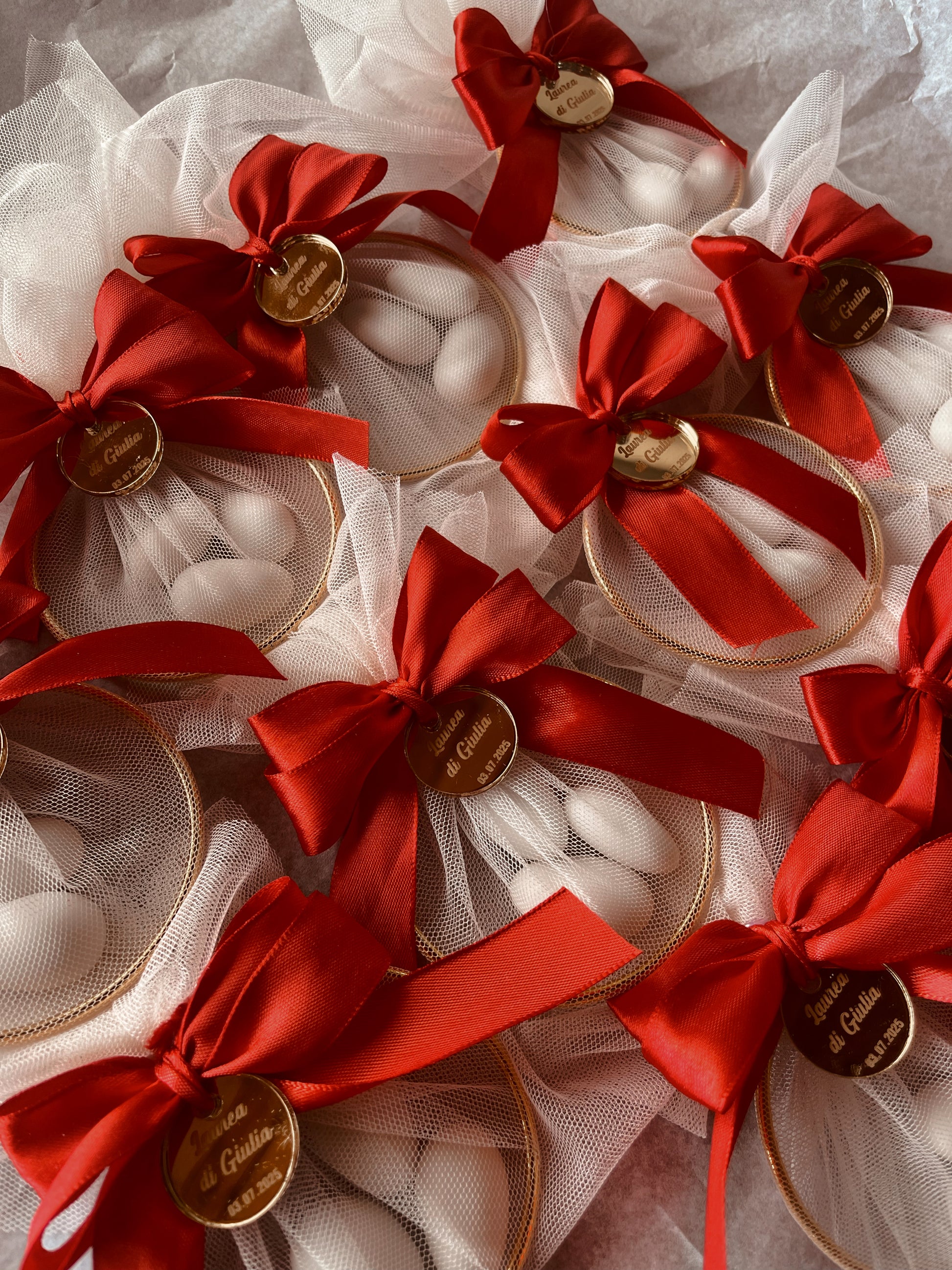 Rendi unico ogni evento speciale con i nostri eleganti confetti confezionati in cerchio oro. Ogni confezione contiene 3 confetti di alta qualità, perfetti per bomboniere, segnaposto o piccoli pensieri raffinati.