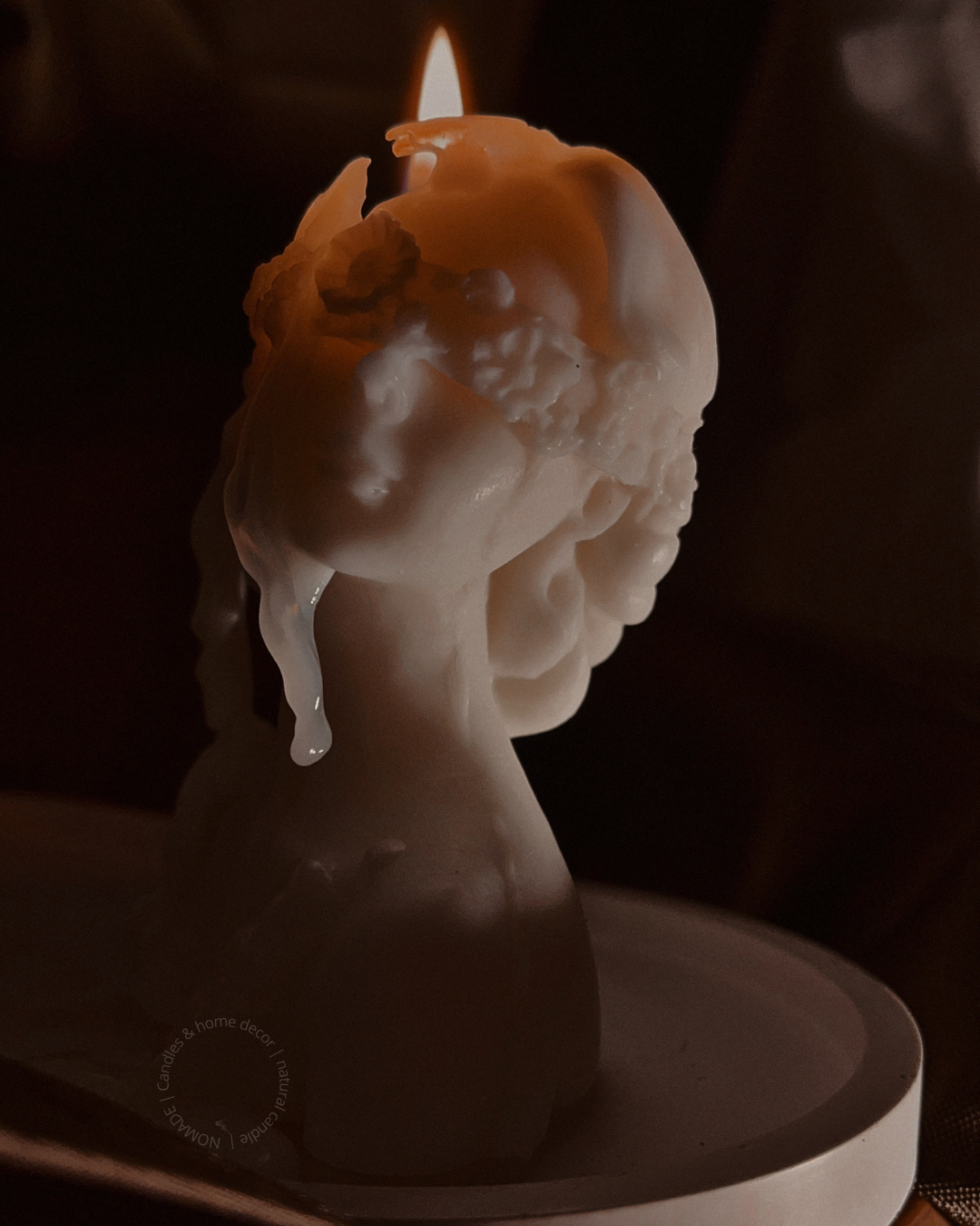 Silenziosa e misteriosa, la candela Dea Bendata simboleggia fortuna e giustizia. Accesa, la luce bianca rivela una potenza nascosta, mentre i fiori sulla benda si sciolgono, liberando un profumo avvolgente che porta equilibrio e serenità. Una forza straordinaria nel silenzio.