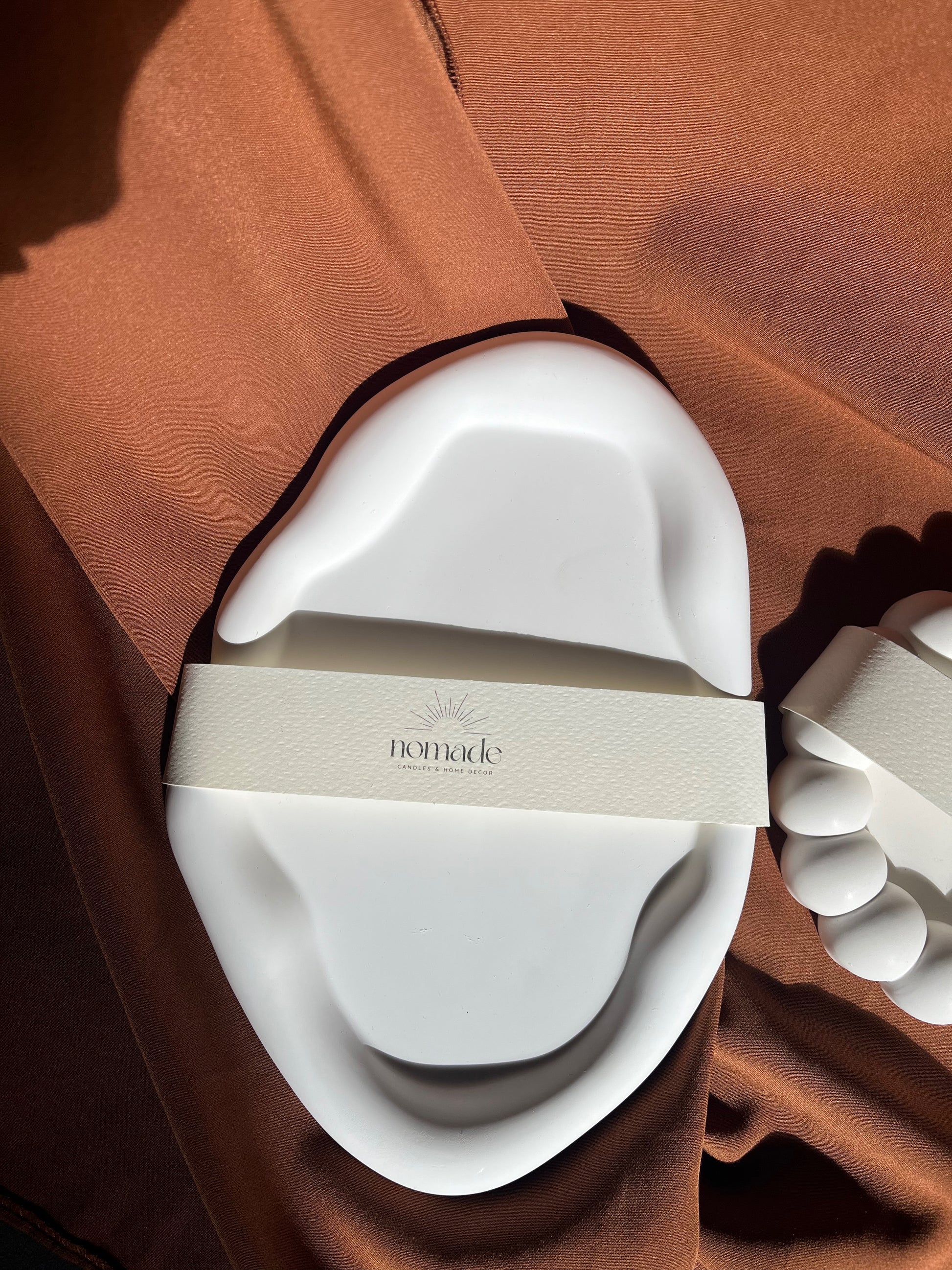 Il nostro vassoio Milos è realizzato con 100% polvere di ceramica e colato a mano nel laboratorio di Nomade, in Italia.